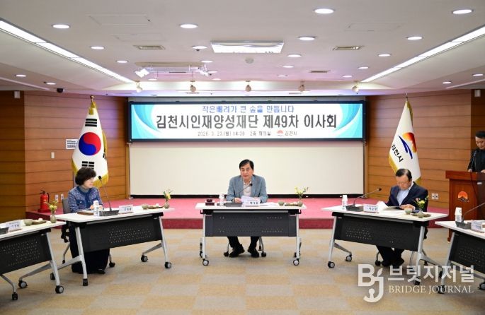 브릿지저널 정보영 기자 | 김천시인재양성재단은 3월 23일, 김천시청 2층 회의실에서 제49차 이사회를 개최하고 2025년도 재단 운영성과 점검과 함께 주요 안건을 심의·의결했다.