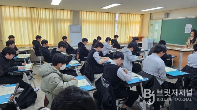 브릿지저널 김경미 기자 | 충청북도교육청은 24일, 대학수학능력시험에 대한 적응력을 기르고, 학생들의 효율적 학습관리를 지원하기 위해 고등학교 1, 2, 3학년 학생을 대상으로 3월 전국연합학력평가를 실시했다.