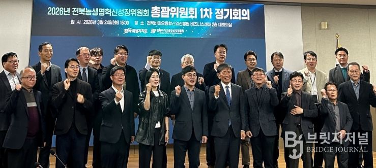 브릿지저널 윤나영 기자 | 전북특별자치도 농생명혁신성장위원회는 24일 전북바이오융합산업진흥원에서‘2026년 제1차 총괄위원회’를 열고, 기업 기술수요 기반 지원과 기술사업화 확대 방안을 논의했다고 밝혔다.