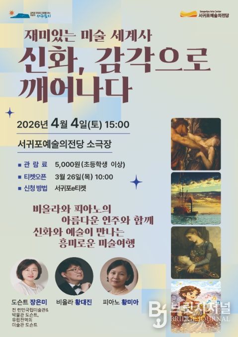 서귀포예술의전당 관계자는 “이번 특강을 통해 시민들이 멀게만 느껴졌던 고전 신화와 무심코 지나쳤던 지폐 속 그림에서 자신만의 예술적 가치를 발견하는 소중한 시간이 되길 바란다”라고 밝혔다.