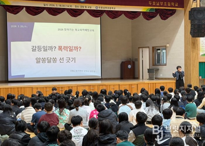 브릿지저널 정보영 기자 | 경상북도포항교육지원청은 3월 25일 두호남부초등학교 학생 4~6학년 430여 명을 대상으로 동화책을 활용한 '찾아가는 학교폭력 예방교육'을 성황리에 실시했다.