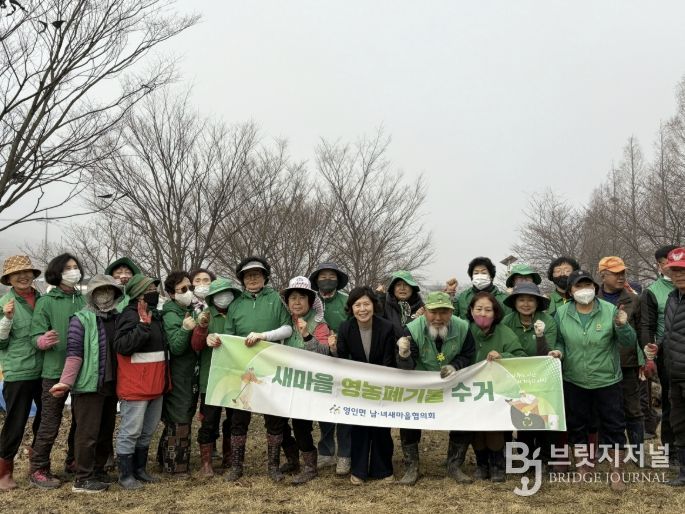 이날 영인면 새마을협의회를 중심으로 새마을지도자와 부녀회장 등 30여 명이 참여해 33개 마을 농경지에 흩어져 있던 영농폐기물을 일제히 수거·정리했다.