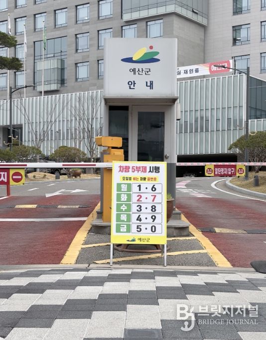 브릿지저널 정보영 기자 | 예산군은 중동 사태 장기화에 따른 원유 수급 불안에 대응하고 에너지 절약을 통한 자원안보 위기 극복을 위해 공공기관 ‘승용차 5부제’를 2026년 3월 30일부터 시행한다고 밝혔다.