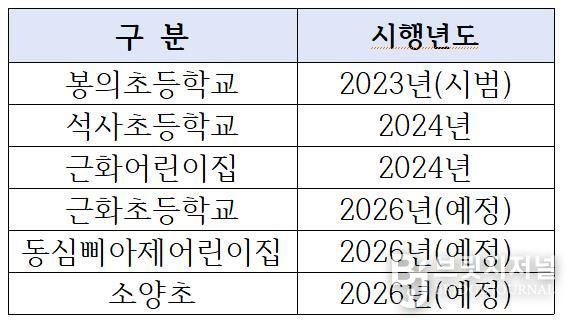 한편 시는 지난 2023년 봉의초등학교를 시작으로 2024년 석사초와 근화어린이집 등 총 3곳에서 탄력운영을 도입해 왔다.