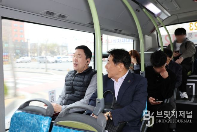 나 시장은 이날 자택 인근 버스정류장에서 시내버스에 탑승해 출근길 시민들과 자연스럽게 소통하며 현장의 목소리를 청취했다.