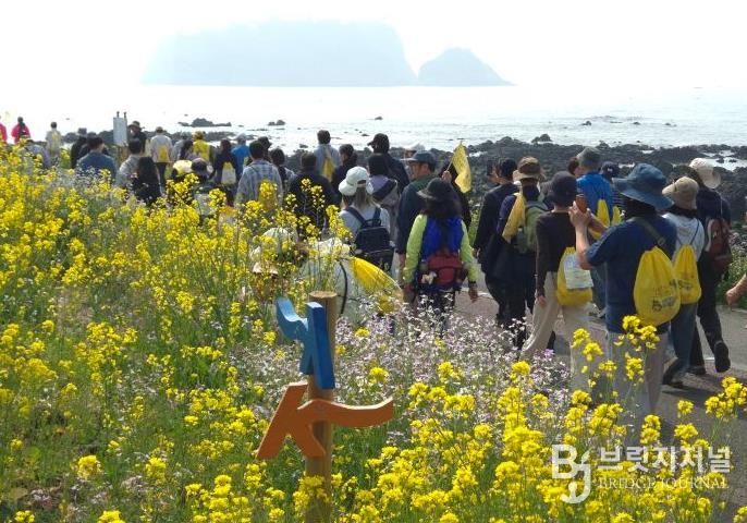 브릿지저널 정보영 기자 | 노랗게 물든 서귀포 유채꽃 길을 걷는 제28회 서귀포 유채꽃 국제걷기대회가 3월 28일부터 29일까지 양일간 서귀포시 일원에서 성황리에 개최됐다.
