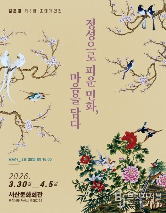 브릿지저널 정보영 기자 | 충남 서산시는 오는 3월 30일부터 4월 5일까지 서산시 문화회관 전시실에서 문화회관 초대전 김은경 작가의 개인전 '정성으로 피운 민화, 마음을 담다'를 개최한다고 밝혔다.