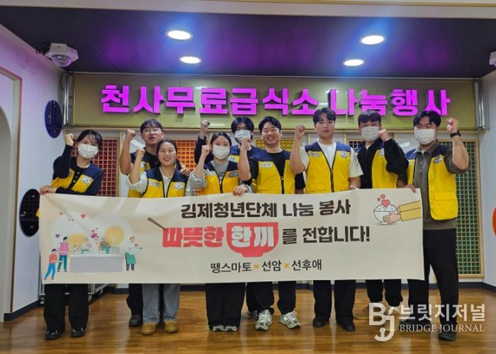 시는 30일, 청년단체 땡스마토, 선암, 선후애 소속 청년들과 성장전략실 직원들이 함께 김제천사무료급식소에서 배식 봉사활동을 진행했다고 밝혔다.
