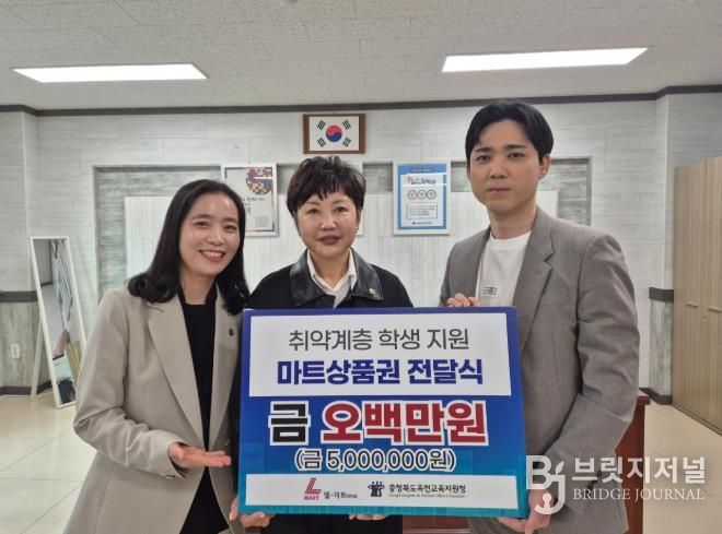 브릿지저널 김경미 기자 | 옥천교육지원청은 지역 자원을 활용하여 교육복지안전망을 강화하고 취약계층 학생들 50여 명에게 실질적인 도움을 제공하고자 ㈜엘마트 옥천점로부터 500만원 상당의 식료품 구매 상품권을 기탁받아 지원할 예정이라고 밝혔다.