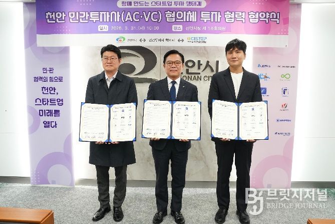 브릿지저널 정보영 기자 | 천안시가 전국 기초지방자치단체, 비수도권 최초로 민간투자사(AC·VC) 협의체를 구성하고, 지역 스타트업 투자 생태계 활성화를 위한 본격적인 행보에 나섰다.