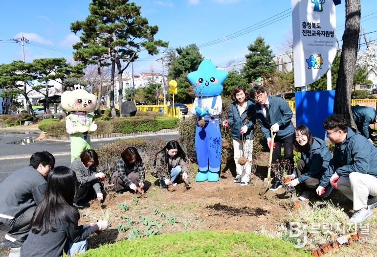 브릿지저널 김경미 기자 | 진천교육지원청은 31일 ‘청렴이 싹트는 봄’을 주제로 식목행사를 개최하고, 충청북도교육청 진천 홍보대사(박현주 외 5명)와 청렴문화 정착을 위한 ‘청렴사회 협약’을 체결했다.