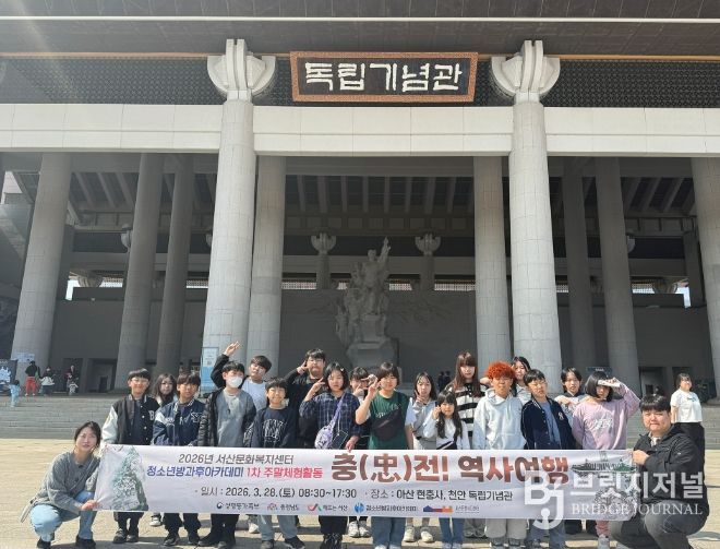 브릿지저널 정보영 기자 | 서산문화복지센터는 지난 28일, 아산 현충사 및 천안 독립기념관에서 청소년방과후아카데미 청소년을 대상으로 1차 주말체험활동을 성료했다고 밝혔다.