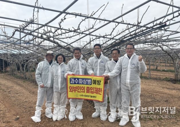 브릿지저널 김경미 기자 | 전남 나주시가 배 개화기를 앞두고 과수화상병 유입 차단과 확산 방지를 위한 현장 점검과 예방 중심 방제에 나서며 농가 피해 최소화에 총력을 기울이고 있다.
