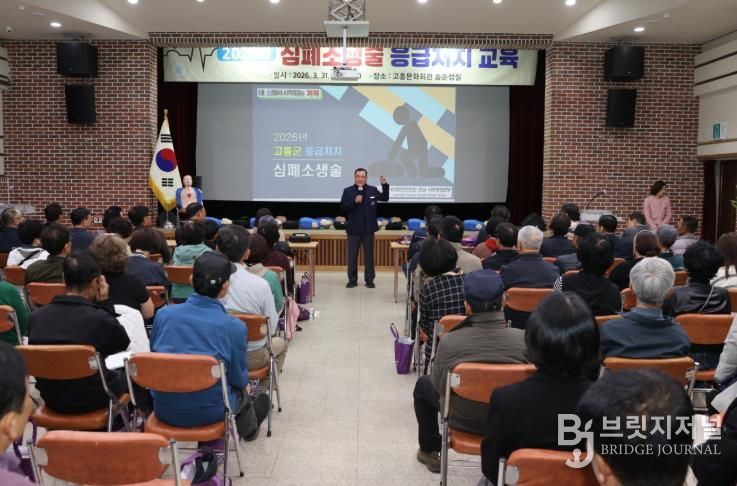 브릿지저널 김경미 기자 | 고흥군은 31일 고흥문화회관 송순섭실에서 자동심장충격기(AED) 설치 대상 마을 이장과 부녀회장 90명을 대상으로 심폐소생술 등 응급처치 교육을 실시했다고 밝혔다.