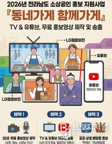 브릿지저널 김경미 기자 | 강진군이 고물가와 경기 침체로 어려움을 겪는 관내 소상공인을 위해 홍보영상 제작부터 티비 광고 송출까지 원스톱으로 지원하는 ‘2026년 동네가게 함께가게 홍보 지원사업’ 대상자를 모집한다.