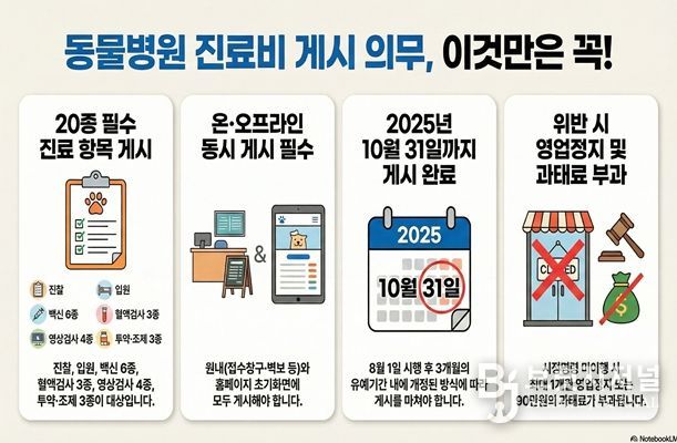 이번 점검은 2025년 8월 시행된 동물병원 진료비 게시제도의 적정 이행 여부와 전반적인 운영 실태를 확인하기 위해 추진된다.