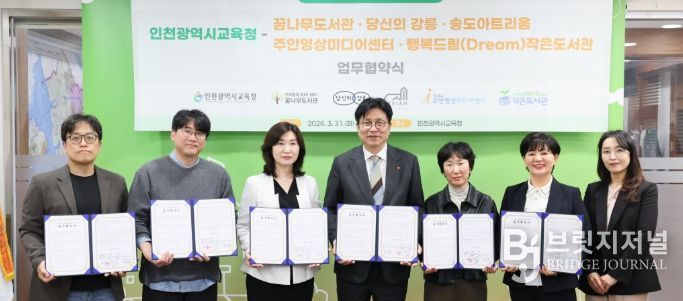브릿지저널 김경미 기자 | 인천광역시교육청은 31일 꿈나무도서관 등 민간·공공 5개 기관과 ‘읽걷쓰 문화 확산을 위한 업무협약’을 체결했다.
