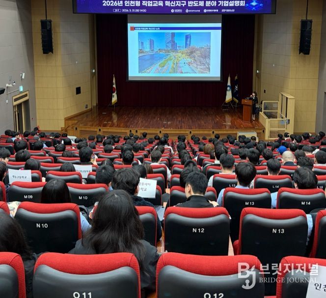 브릿지저널 김경미 기자 | 인천광역시교육청은 지난 31일 인천경제자유구역청에서 관내 직업계고 학생 300여 명을 대상으로 ‘2026 직업교육 혁신지구 반도체 분야 기업설명회’를 개최했다.