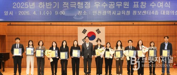브릿지저널 김경미 기자 | 인천광역시교육청은 1일 정보센터 대회의실에서 ‘2025년 하반기 적극행정 우수공무원 표창 수여식’을 개최했다.