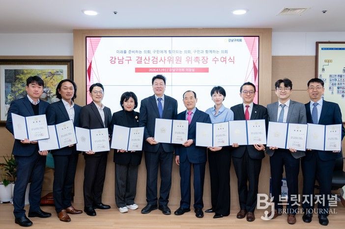 브릿지저널 김경미 기자 | 강남구의회는 4월 1일 오전 구의회 5층 의장실에서‘2025회계연도 결산검사 위원 위촉식’을 열고, 본격적인 결산검사를 돌입했다.