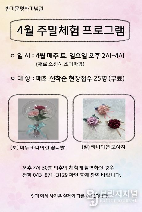 브릿지저널 김경미 기자 | 음성군 제8대 유엔사무총장 반기문 평화기념관에서는 관람객을 위한 4월 주말 무료 체험 프로그램을 운영한다.