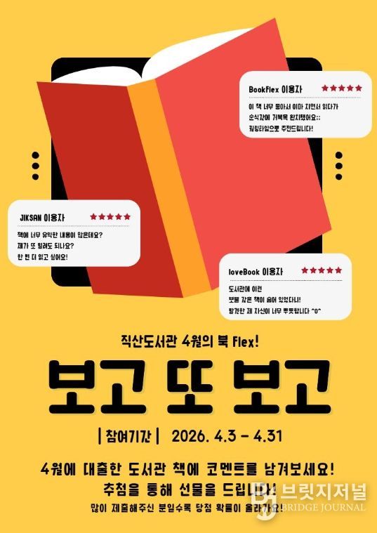브릿지저널 정보영 기자 | 천안시 직산도서관은 4월 ‘북 플렉스(Flex)’ 프로그램으로 ‘보고 또 보고’를 운영한다고 2일 밝혔다.