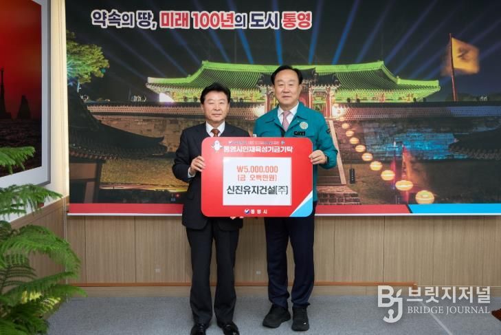 브릿지저널 김경미 기자 | 통영시는 지난 1일 신진유지건설(주)(대표 김인식)에서 인재육성기금 500만 원을 기탁했다고 밝혔다.
