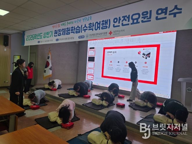 브릿지저널 정보영 기자 | 경상북도경주교육지원청은 지난 1일 경주교육지원청 3층 대회의실에서 관내 희망 교직원을 대상으로 2026학년도 상반기 현장체험학습 안전요원 연수를 실시했다.