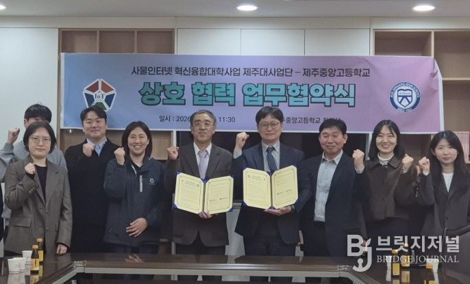 브릿지저널 정보영 기자 | 제주도교육청 제주중앙고등학교는 1일 사물인터넷 혁신융합대학사업 제주대사업단과 인공지능·디지털 기반 교육 혁신 지원을 위한 업무협약(MOU)을 체결했다.