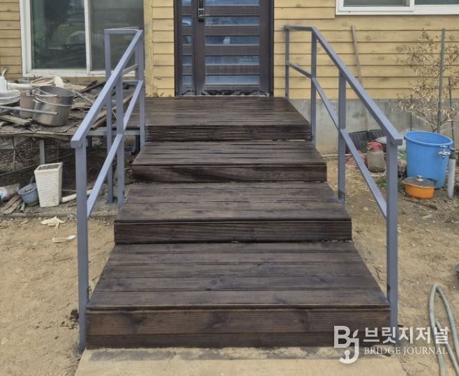 둔포면은 상담 직후 해당 가구를 통합사례관리 대상자로 선정하고 신속한 지원에 나섰다. 위험한 기존 구조물을 철거한 뒤 견고한 자재로 계단을 재시공했으며, 거동이 불편한 어르신을 위해 양옆에 안전 난간(핸드레일)을 추가 설치해 보행 안전성을 확보했다.