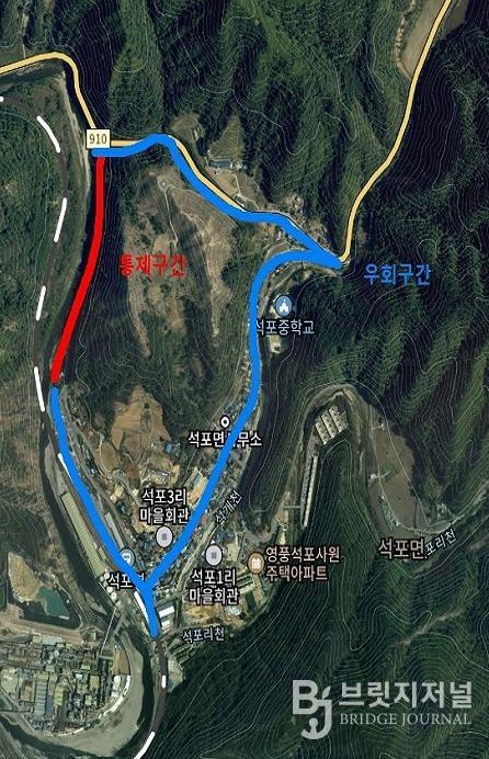 브릿지저널 정보영 기자 | 봉화군은 석포면 석포리 일원 불미고개 입구부터 하수처리장구간 (군도20호)을 오는 4월 8일부터 8월 15일까지(약 130일간) 낙석방지망 설치 등 정비사업을 위해 전면 통제 할예정이다.