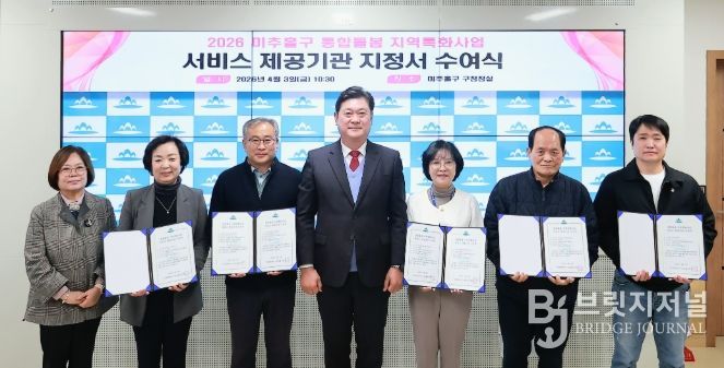 브릿지저널 김경미 기자 | 인천 미추홀구는 3일 구청장실에서 ‘2026년 미추홀구 통합 돌봄 지역특화 사업을 수행할 서비스 제공기관 5곳에 지정서를 수여했다고 밝혔다.
