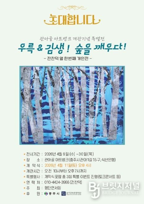 한편, 전찬덕 작가는 충주문화원장을 역임하고 깃발 서예전, 담장의 향기전 등 다양한 기획전을 통해 지역 문화예술 발전에 기여해 온 중견 예술가다.