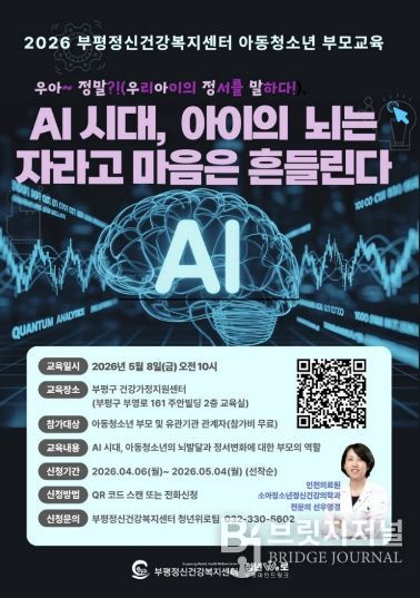 허휴정 부평정신건강복지센터 센터장은 “이번 교육을 통해 디지털 환경 속에서 성장하는 아동·청소년의 뇌 발달과 정서적 특성을 올바르게 이해하고, 정신건강 문제에 효과적으로 대응할 수 있는 정보를 제공하고자 한다”며 “참여자들에게 유익한 시간이 되길 바란다”고 말했다.