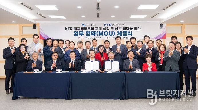 브릿지저널 정보영 기자 | 구미시는 3일 시청 대회의실에서 김장호 시장, 구자근·강명구 국회의원, 구미시의회 의장, 도·시의원, (재)한국화학융합시험연구원 원장 등이 참석한 가운데 한국화학융합시험연구원과 업무협약(MOU)을 체결했다.