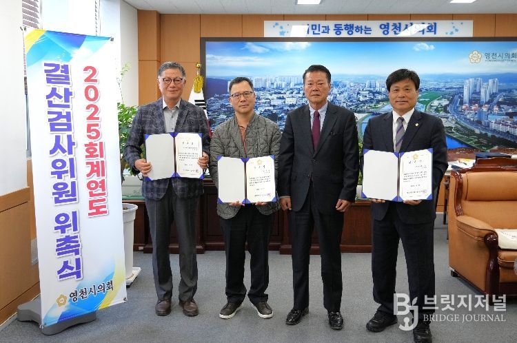 브릿지저널 정보영 기자 | 영천시의회는 3일 김상호 의원(대표 위원), 권혁희 세무사, 이종규 전 영천시 국장 3명을 2025회계연도 결산검사위원으로 위촉했다.