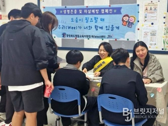 브릿지저널 김경미 기자 | 영동교육지원청 위(Wee)센터는 3일, 새너울중학교에서 전교생이 참여하는 체험형 ‘상반기 생명지킴 및 생명존중문화 조성 캠페인’을 운영했다.