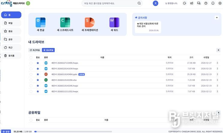 브릿지저널 김경미 기자 | 충청북도교육청은 디지털 기반의 스마트 교육 환경을 조성하고 학생과 교직원의 교육 활동을 지원하기 위해 교육 전용 클라우드 저장공간인 '채움드라이브' 서비스를 본격 운영한다고 밝혔다.