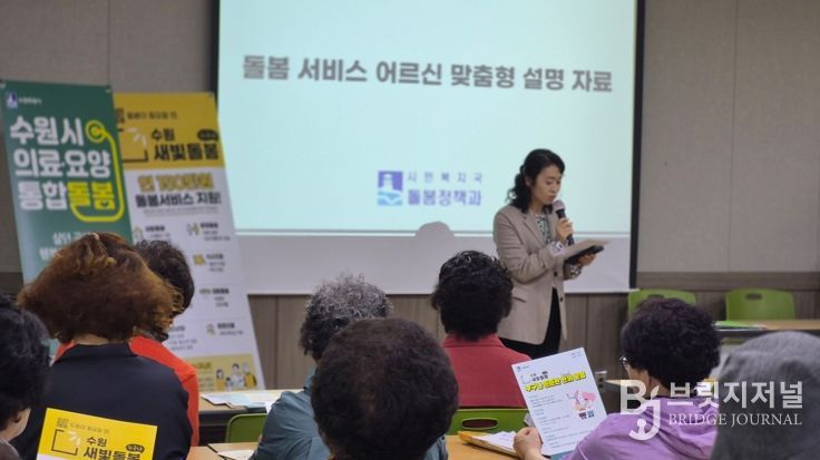 브릿지저널 김경미 기자 | 수원특례시는 4월 30일까지 경로당과 노인복지관 등 어르신 이용 시설을 중심으로 ‘의료·요양 통합 돌봄 서비스’와 ‘수원새빛돌봄(누구나)’을 집중적으로 홍보한다.
