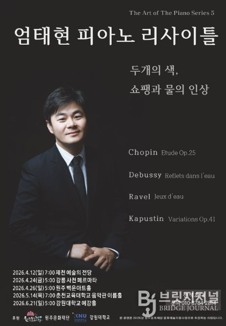 브릿지저널 김경미 기자 | 제천 출신 피아니스트 엄태현 피아노 리사이틀이 오는 4월 12일 7시 제천 예술의 전당에서 열린다.