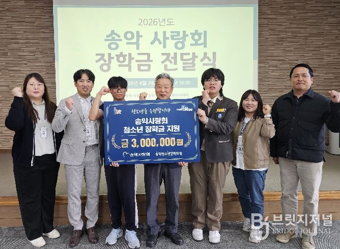 브릿지저널 정보영 기자 | 송악사랑회는 3일 송악청소년방과후아카데미에 장학금을 전달했다. 이번 장학금 전달식은 송악청소년문화의집에서 진행됐으며, 재학생 3명에게 매월 10만원씩 총 300만원이 지원된다. 송악사랑회는 청소년들의 올바른 성장에 기여하고자 하는 의지를 표명하며, 앞으로도 후원을 지속할 계획임을 밝혔다.