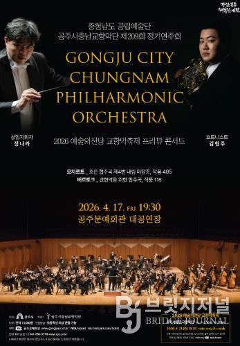 브릿지저널 정보영 기자 | 충청남도 공립예술단 공주시충남교향악단은 오는 4월 17일 오후 7시 30분 공주문예회관 대공연장에서 ‘제209회 정기연주회’를 개최한다.