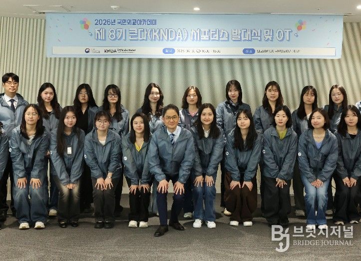 브릿지저널 김경미 기자 | 외교부 국립외교원은 4월 3일 국민외교아카데미 서포터스 큰다(KNDA) 제8기 발대식을 개최했다. 올해로 8기를 맞이하는 큰다(KNDA) 서포터스는 국민외교아카데미와 외교에 관심을 갖고 있는 대학생으로 구성된 기자단으로 이번 발대식에서는 앞으로 8개월간 활동할 서포터스 20명이 새롭게 임명됐다.