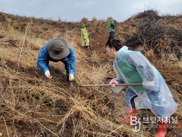 이번 행사에는 새마을회 회원을 비롯해 바르게살기운동 회원, 지역 주민 등 50여 명이 참여해 산불 등으로 훼손된 산림에 낙엽송 1000그루를 심었다.