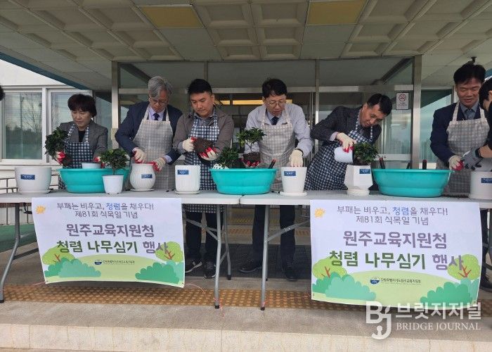 브릿지저널 윤나영 기자 | 강원특별자치도원주교육지원청은 4월 6일 오전 9시 30분, 원주교육지원청 청사 현관 앞에서 제81회 식목일 기념 ‘청렴 나무심기’ 행사를 실시했다.