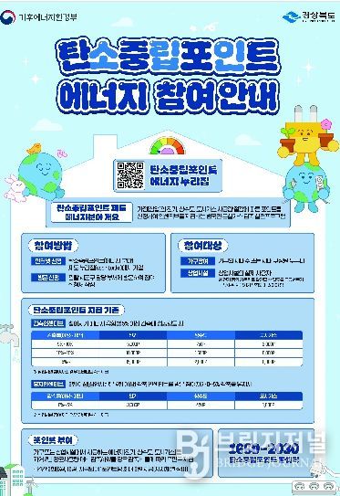 브릿지저널 정보영 기자 | 경상북도는 도민의 탄소중립 실천을 유도하고 온실가스 감축을 확대하기 위해 ‘탄소중립포인트제(에너지·자동차 분야)’ 참여자를 모집한다.