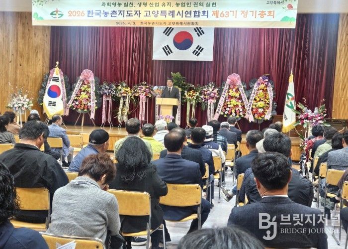 브릿지저널 김경미 기자 | 한국농촌지도자 고양특례시연합회는 지난 3일 고양시농업기술센터에서 회원과 관계자 200여 명이 참석한 가운데 제63기 정기총회를 개최했다.
