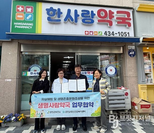 브릿지저널 김경미 기자 | 강진군이 지역사회 자살예방과 생명 존중 문화 확산을 위해 관내 약국 6개소와 ‘생명사랑약국’ 운영을 위한 업무 협약을 추가로 체결하여 촘촘한 생명 안전망 구축에 나섰다.
