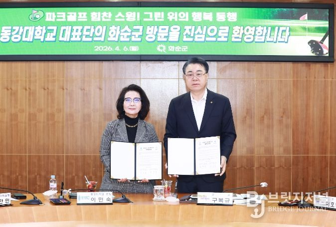 브릿지저널 김경미 기자 | 화순군은 지난 6일 화순군청 소회의실에서 동강대학교와 파크골프 활성화를 위한 업무 협약을 체결했다고 밝혔다.
