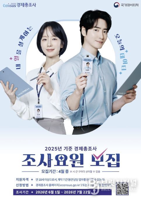 브릿지저널 김경미 기자 | 시흥시는 ‘2025년 기준 경제총조사’의 원활한 추진을 위해 오는 4월 20일부터 28일까지 조사요원 182명을 모집한다.